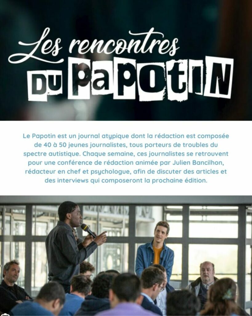 Créé en 1990 par Driss El Kesri, éducateur à l’hôpital de jour d’Antony, Le Papotin est un journal atypique dont la rédaction est composée de 40 à 50 jeunes journalistes, tous porteurs de troubles du spectre autistique. Chaque semaine, ces journalistes se retrouvent pour une conférence de rédaction animée par Julien Bancilhon, rédacteur en chef et psychologue, afin de discuter des articles et des interviews qui composeront la prochaine édition.