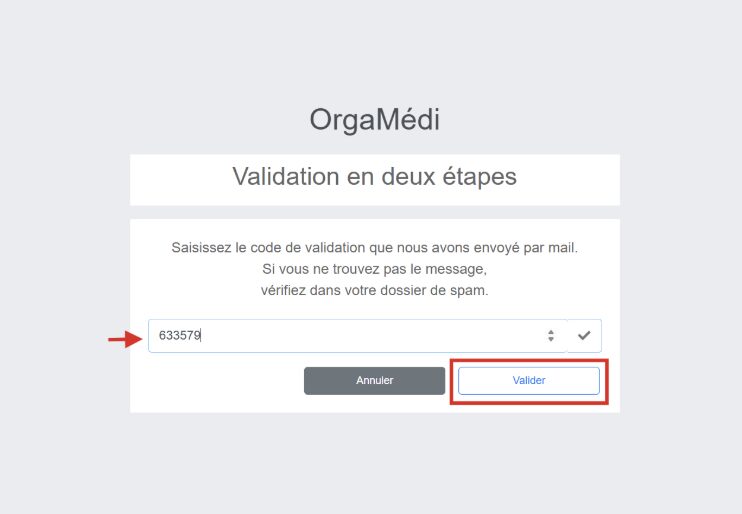 4. Une fois le code validé, OrgaMédi s’ouvrira normalement.